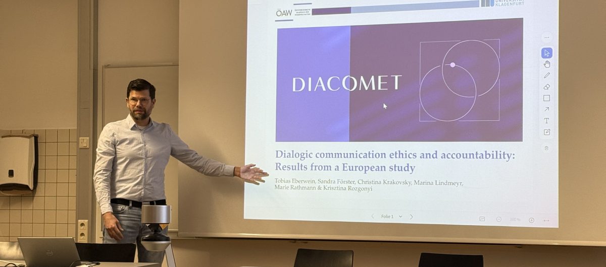 On 14 January 2026, DIACOMET was presented at the Research Café of the Department of Media and Communications at the University of Klagenfurt. Tobias Eberwein and his colleagues Sandra Förster, Christina Krakovsky, Marina Lindmeyr, Marie Rathmann and Krisztina Rozgonyi presented key findings from Austria on dialogic communication ethics and accountability.